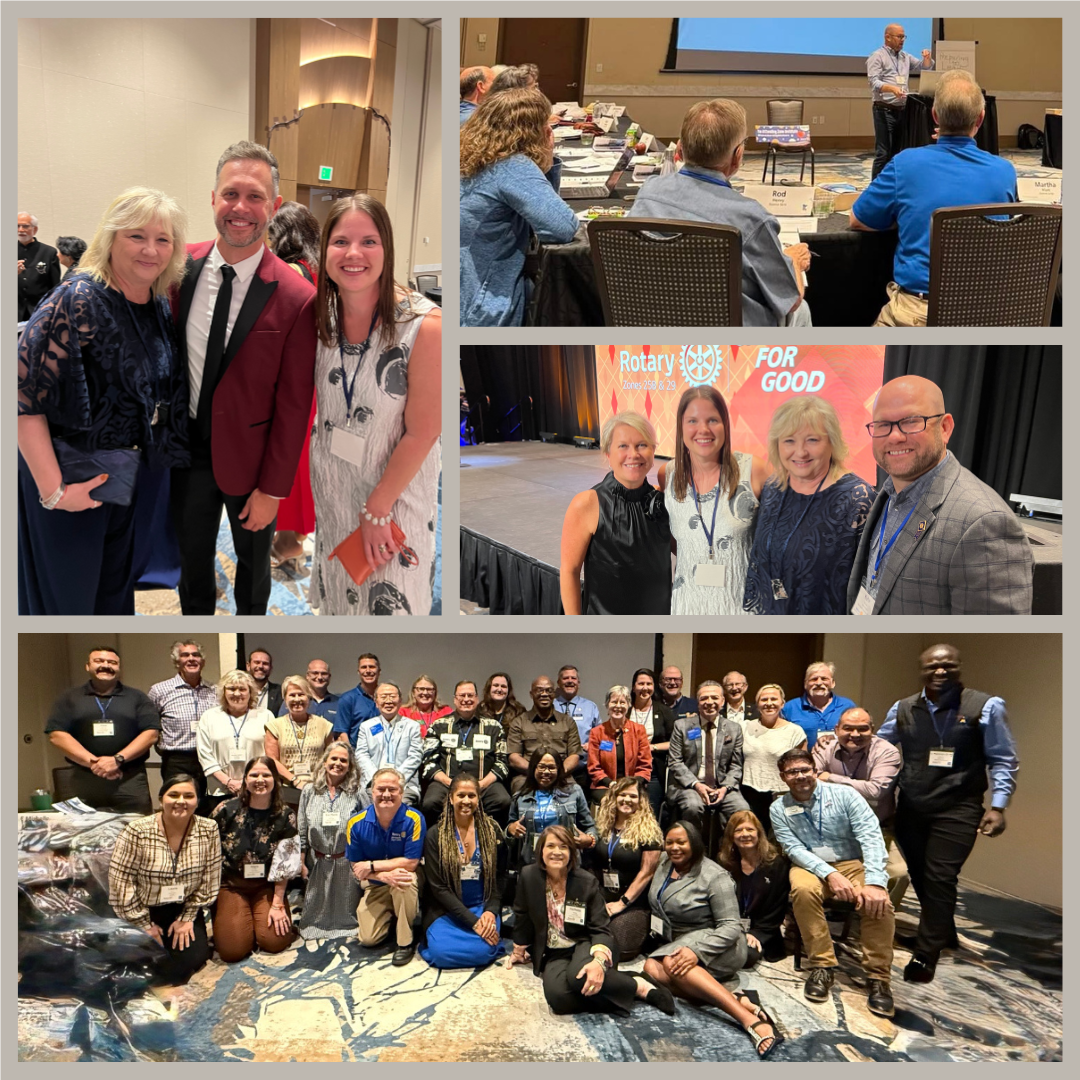 The beginning of October brought Rotary Zone 25B-29 Institute to Prior Lake as it took place at Mystic Lake Center. A Rotary Zone is made of many Districts; 24 Districts from the Upper Midwest down to Texas were represented this year. As the "unofficial" host Club, Prior Lake Rotary was involved in all facets of the Rotary Zone Institute including planning, attending, volunteering, and hosting. The Zone Institute includes Learning Sessions the first 2 and a half days of the 4-day event, which consists of facilitated sessions of current, incoming, or upcoming District Leaders from District Governor to specific areas such as Membership, The Rotary Foundation, or Public Image. Prior Lake Rotarian Kyle Haugen, a Past District Governor (PDG), was the facilitator for the District Governor Nominees (DGNs), who will lead their District in the 2027-2028 Rotary year. Another Learning Session was the Leadership Development track. These are individuals selected by District Leaders who have shown the interest and aptitude to move into roles at an elevated level. Prior Lake Rotarians Angie Kierstead and Oksana Oleksyszyn both were selected. Said Oksana about this opportunity, "My experience was truly uplifting. I learned so much from other Rotarians being vulnerable and sharing their stories, Hearing their struggles, why they joined Rotary, and why they stay. The WHY is different for everyone, yet we come together for a common cause." Angie's big takeaways were don't go it alone. "Our Prior Lake Rotary Club is such a special and impactful club on its own. AND we are connected to an ecosystem of so many other Rotarians with shared hearts of service seeking to make the world a better place. We truly have the ingredients to UNITE FOR GOOD this year and into the future." She went on to say, "The more ways we can collaborate with other clubs across our District, Zone, or other parts of the world – the more we can accomplish. This goes for local non-Rotary partnerships as well." PHOTOS (Upper left and clockwise): Oksana and Angie with event emcee and Past District Governor Ben Bauer; PDG Kyle Haugen at one of his sessions with the DGNs; Oksana, Angie, and Kyle with Past Rotary International President Jennifer Jones; the full Leadership Development group photo